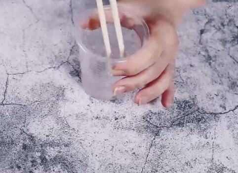 2、用筷子将杯子里的胶水、甘油、沐浴露搅拌至混合均匀。