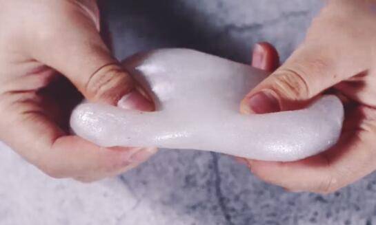 3、加入苏打水搅拌成型,成型之后用手测试一下气泡胶的延伸性,起泡胶完成。