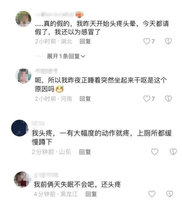3月24日至26日,地球刚刚经历过一场大地磁暴,有网友表示称感受到了“头疼、头晕,还以为感冒了”。