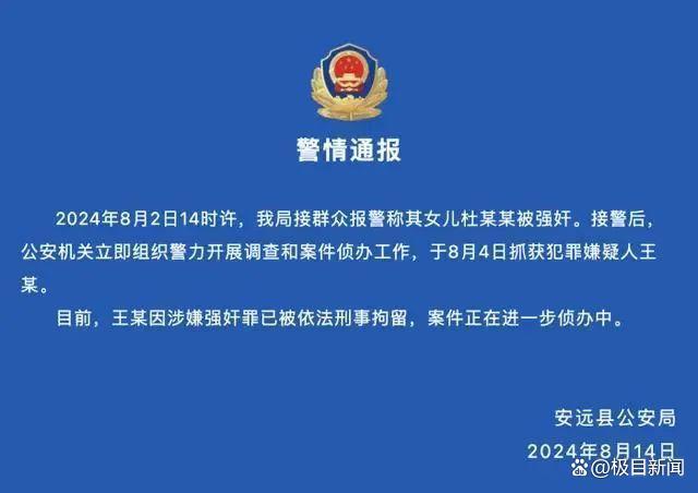 8月14日,江西安远警方发布通报,称该局于8月2日14时许,接到群众报警称其女儿杜某某被强奸。8月4日,犯罪嫌疑人王某已被抓获并依法刑事拘留。根据此前报道,杜某某参加训练营时疑遭负责人侵犯,并在警方立案第二日从6楼坠亡。现代快报记者多方求证发现,杜某某生前参加训练营的机构正是江西安远县“伍兵特训营”,这究竟是一家什么样的训练营?