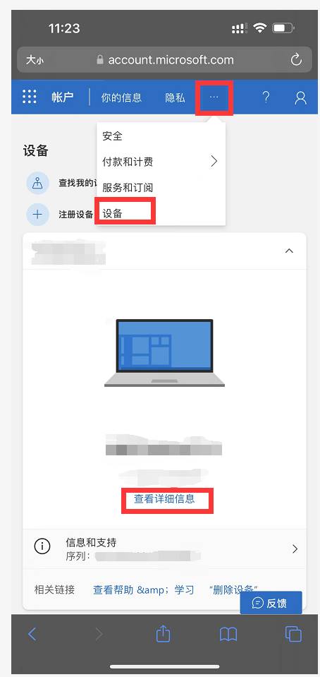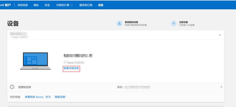 第二步:在打开的设备界面,选择对应的设备点击查看详细信息。