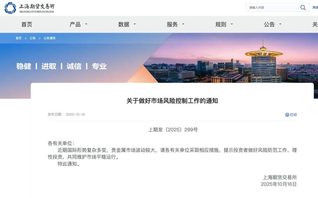 针对近期国际贵金属价格波动剧烈,上海黄金交易所10月16日向各会员单位发布关于做好近期市场风险控制工作的通知。