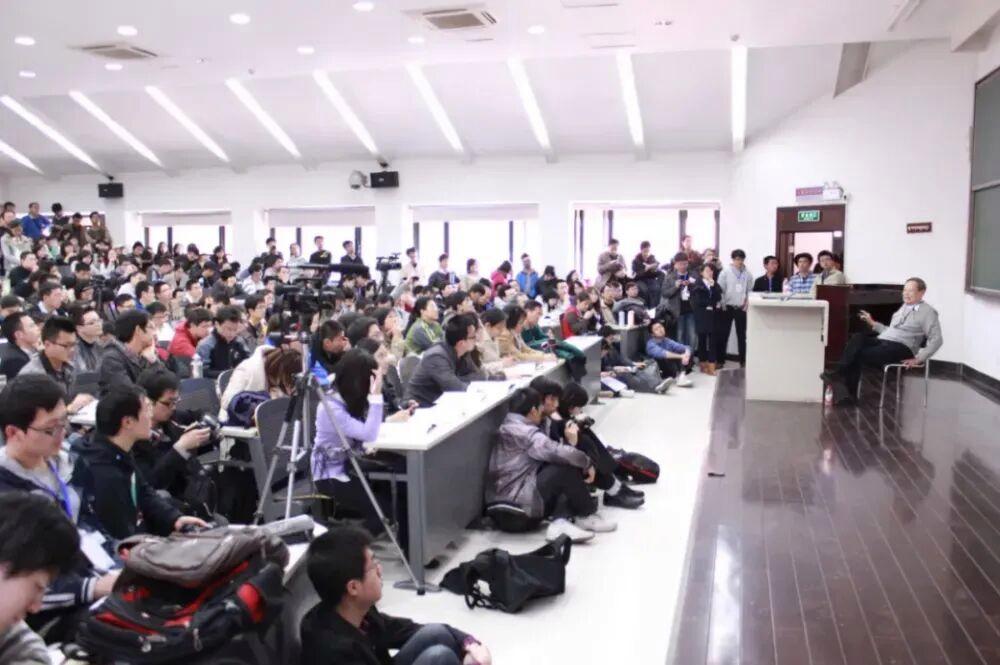 2012年4月5日,杨振宁先生做客清华大学博士生“学术人生”讲坛,讲述他的学习与研究经历。现场座无虚席,很多学生站着听完报告。