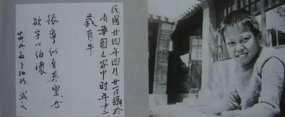 1935年于清华园西院11号杨家院中。远在柏林念子心切的杨武之在照片背后写下:振宁似有异禀,吾欲字以伯瓌。