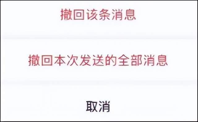 之前执行撤回操作时,会弹出“撤回该条消息?”的弹窗,需点击“撤回”才能完成操作。由于每次只能撤回一条消息,一旦出现一次性发错多条消息的情况,就会陷入麻烦。