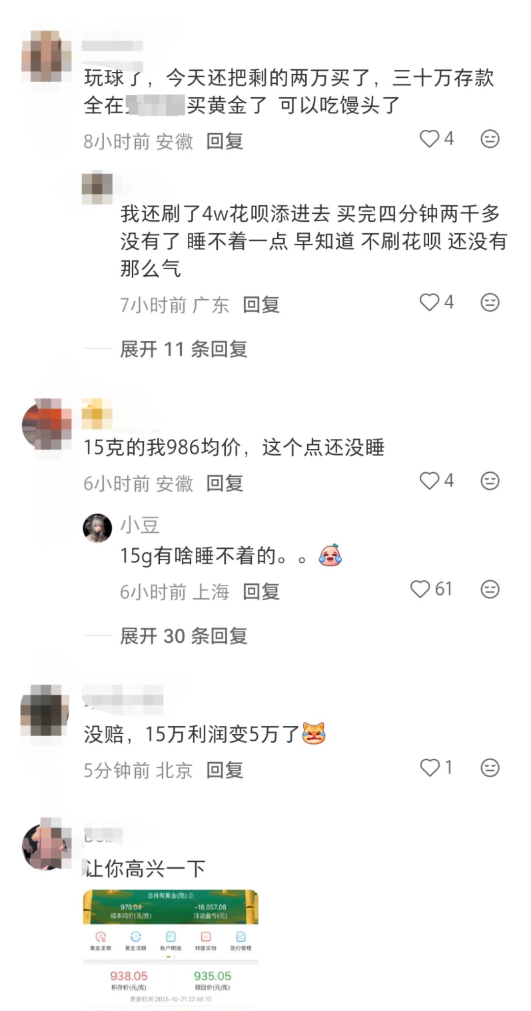 面对金价一夜暴跌,网友哀鸿遍野 图源网络
