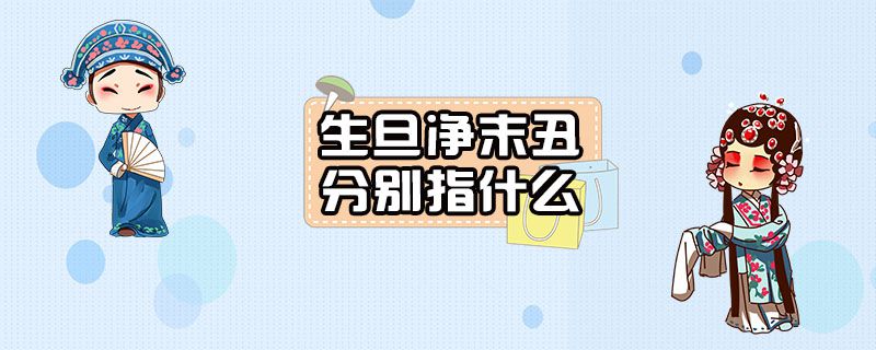 生旦净末丑中的“生”指男性角色,“旦”指女性角色,“净”指花脸,“末”指中年以上男子,“丑”指喜剧角色。生旦净末丑是指戏曲表演中的五个行当,不同行当有着若干分支,并且都有着基本固定的表演人物和表演特色。