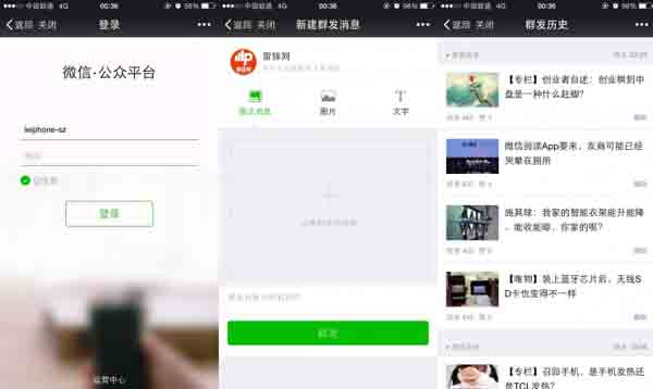 通过体验“雷锋网”(微信号:leiphone-sz)公众号,笔者发现可以在手机端查看“粉丝消息”、“群发历史记录”和“首页介绍”等三个功能。