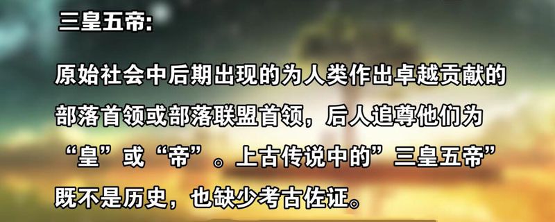 三皇五帝,并不是真正的帝王,仅仅是原始社会中后期出现的为人类作出卓越贡献的部落首领或部落联盟首领,后人追尊他们为“皇”或“帝”。上古传说中的”三皇五帝”既不是历史,也缺少考古佐证。在中华民族的心中,那只是一种精神寄托,是源远流长地神话传说。