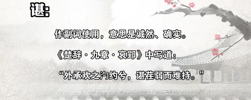 2、作为副词使用,意思是诚然、确实。《楚辞·九章·哀郢》中写道:“外承欢之汋约兮,谌荏弱而难持。”