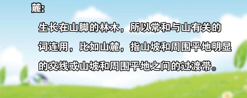 意思是生长在山脚的林木,所以常和与山有关的词连用,比如山麓,指山坡和周围平地明显的交线或山坡和周围平地之间的过渡带。