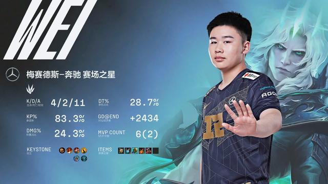 结果在本局游戏中,Kanavi一波前进的入侵,细节没有拼过Wei,在3V3中败下阵来,RNG获得了一定优势,之后小虎马上就游走配合队友越塔上路击杀杰斯。