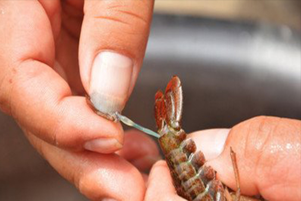 3、龙虾的腹部会有一根筋,即龙虾的消化道,也就是肠子,由于不可以食用,需要用手捏住龙虾尾巴后左右扭动将其抽出。