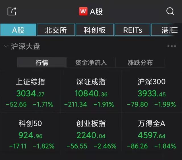 A股进入节前最后一周交易日,25日,三大指数集体低开,沪指跌1.71%,报3034.27点;深成指跌1.91%,报10840.36点;创业板指跌2.46%,报2240.04点。