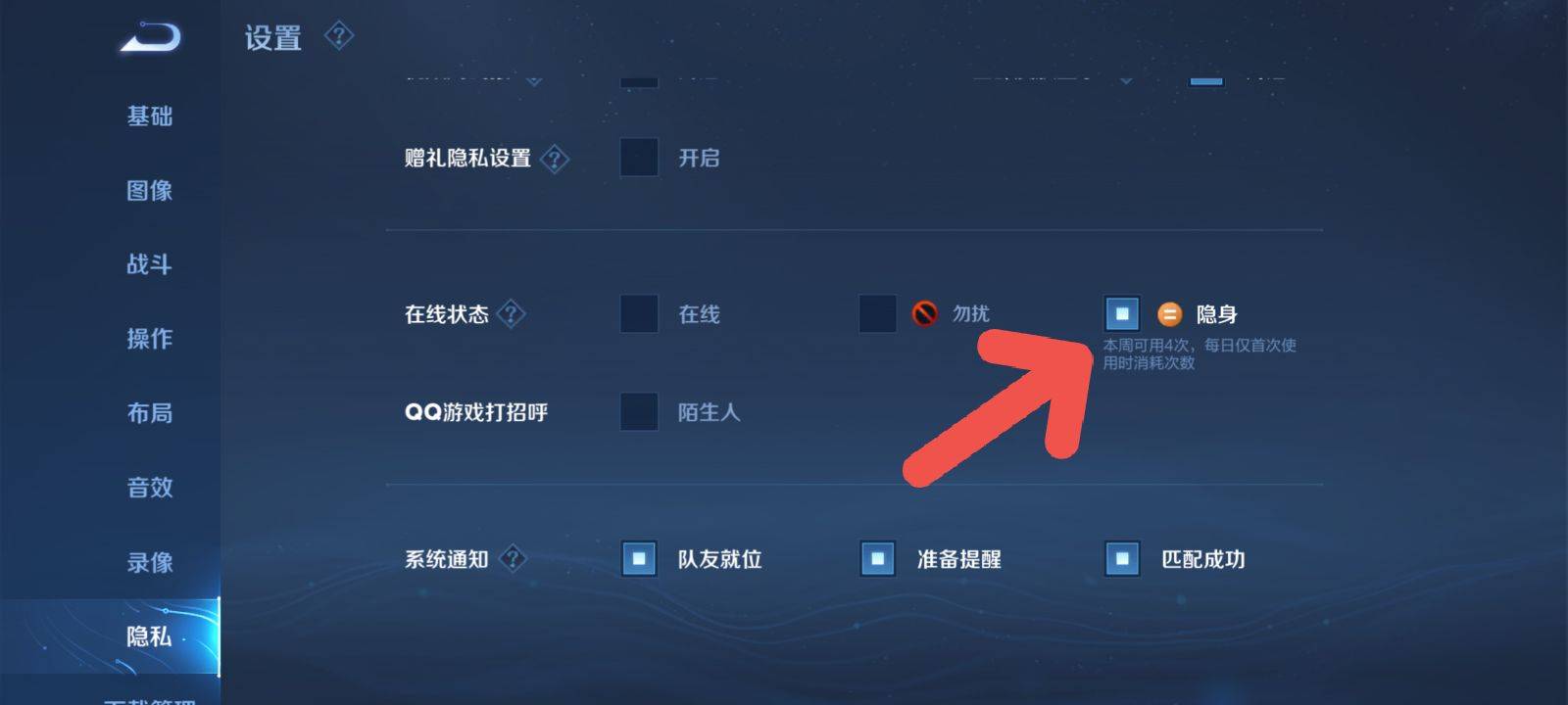 2、左侧选中隐私后,拉到最底部,点击隐身选项,如图所示: