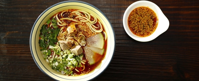 兰州牛肉面又名兰州肉汤牛肉面,是“中国十大面条”之一,也是甘肃兰州的地方小吃。它以“清汤镜、肉香细面”和“一清二白、三红四绿黄武”、一清(汤清)、二白(萝卜白)、三红(辣椒油红)、四绿(香菜、蒜绿)和黄武(面条黄亮)的独特风味,赢得了国内外客户的高度赞誉。被中国烹饪协会评为中国三大快餐之一,赢得了“中国第一面”的美誉。