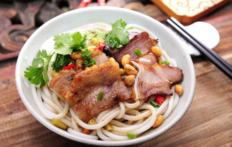 桂林米粉是广西桂林历史悠久的著名传统小吃。它以其独特的风味而闻名。做工精致。首先,将细早籼米磨成浆,装袋沥干水分,然后塞进面团,煮熟后压成圆根或薄片。圆形米粉,片状米粉,俗称米粉,特点是洁白、嫩、软、鲜。吃它的方法有很多。最受关注的是盐水的生产,其技术因家庭而异。它由猪、牛骨、罗汉果和各种调味料制成,香味浓郁。不同的卤水原料和方法,米粉的风味不同。有莴苣粉,是吗