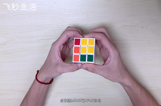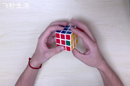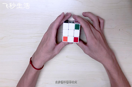 这一步中需要将白色中间块暂时位于顶部,然后将白色的棱块转到顶层,使白色棱块必须与它另一面颜色相同的中间块相连,此步骤不需要公式。