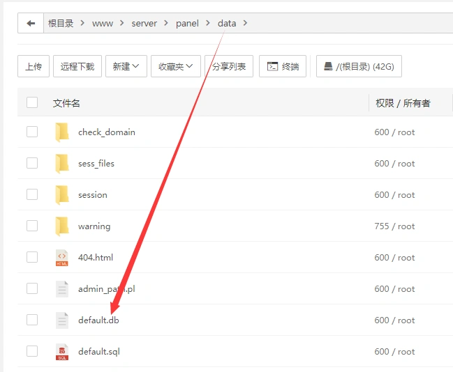一、登录宝塔面板打开文件夹:/www/server/panel/data,下载文件 default.db