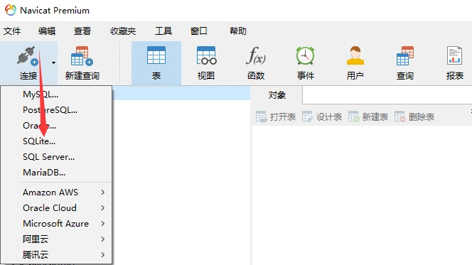 二、打开navicat,左上角:文件->新建连接SQLite。
