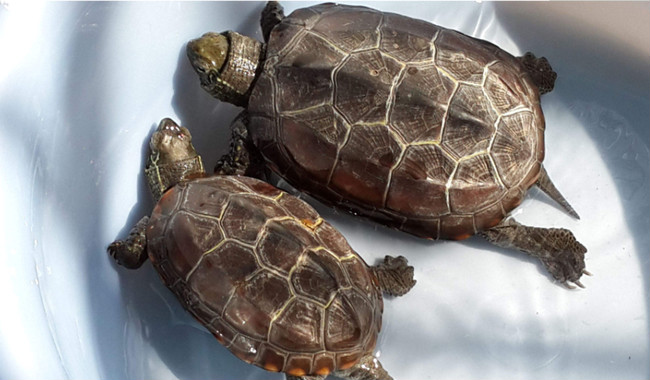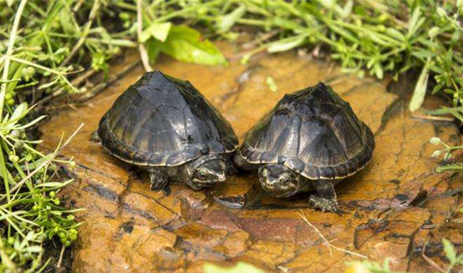 西方金龟凶猛,互动。它们的外形非常漂亮,属于更长更漂亮的乌龟。
