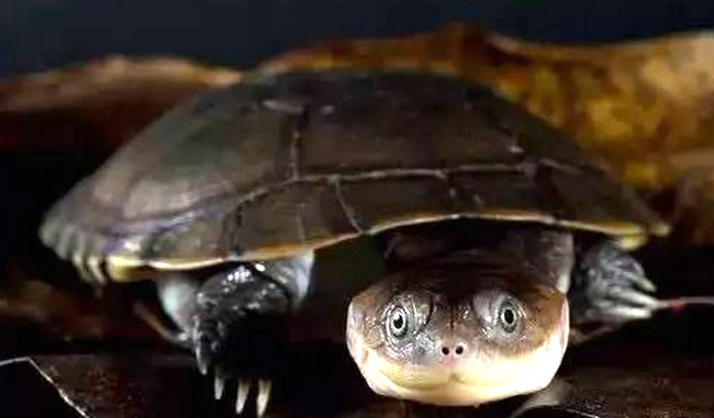 侧颈黄头龟,又称忍者龟,是一种素食龟,偶尔爱吃肉。小的时候很可爱,需要热身,互动很好,喜欢咬手指,眼睛很可爱。