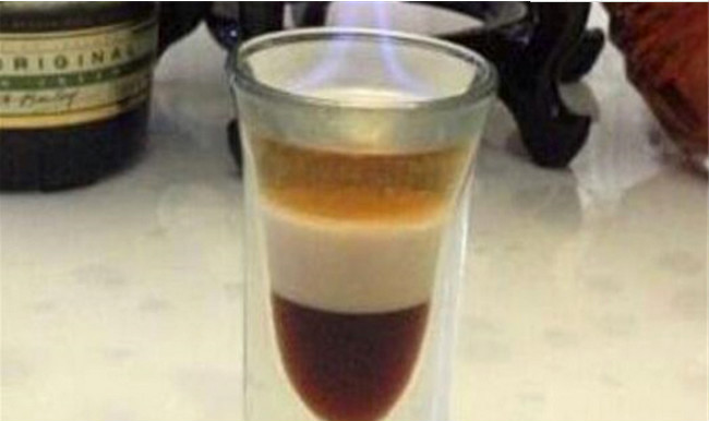 这款B-52轰炸机鸡尾酒属于无聊型,喝法也相当独特。有了火焰,你可以瞬间感受到冰和火是什么。喝的时候要注意不要烧,酒精含量也不能低估。