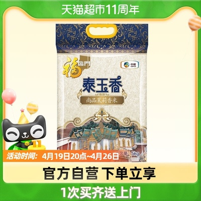 当季新米福临门大米5kg泰裕香尚品茉莉香小包装长粒香进口大米泰国(进口原粮大米香软滑爽口,米粒细长)