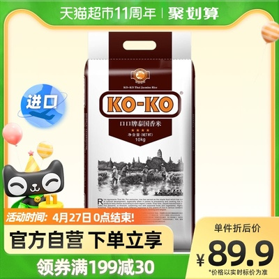 进口KOKO大米泰国香米20公斤长粒香米正宗泰国大米10KG烹饪包邮正宗(泰国进口大米一年只供泰国养殖一次)