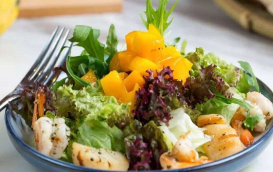 沙拉是美国的日常菜肴之一。切碎的蔬菜和水果与沙拉酱混合,形成美味的蔬菜沙拉和水果沙拉。这种方法保留了食物的原有风味。不同蔬菜的搭配可以吸收不同的营养,方便可口,而且热量很低。它适合减肥和减肥的人。