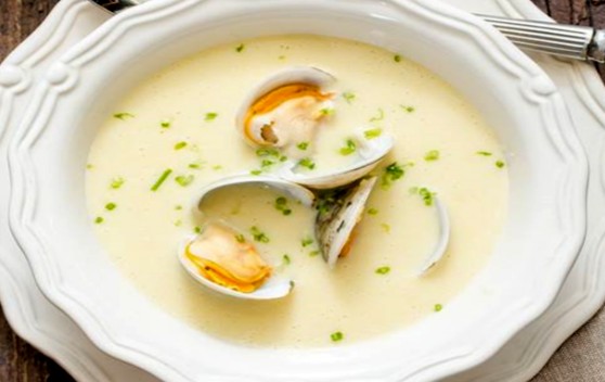 蛤蜊浓汤是一种著名的美国汤。满满的蛤蜊洗净后,就煮了。然后它们被调味和油炸,然后用牛奶在小火上煮。制作起来非常方便。它做的汤呈乳白色,味道鲜美,令人神清气爽。它还富含营养,能有效降低胆固醇。
