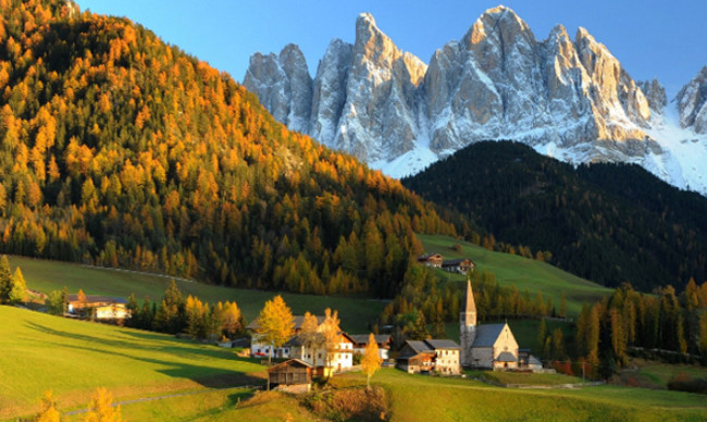 高耸的冰川下是一个绿色的小镇,所以绿色的德沃镇就矗立在冰川下。只要推开一扇窗,就能看到一幅自然美景,让人心旷神怡。