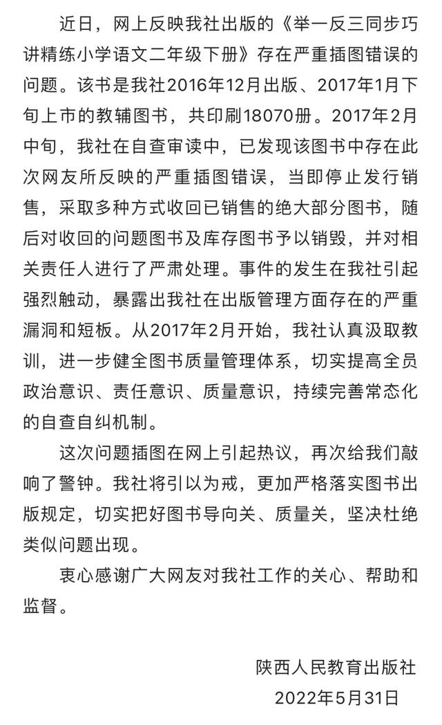 陕西人民教育出版社关于教辅图书插图问题的情况说明