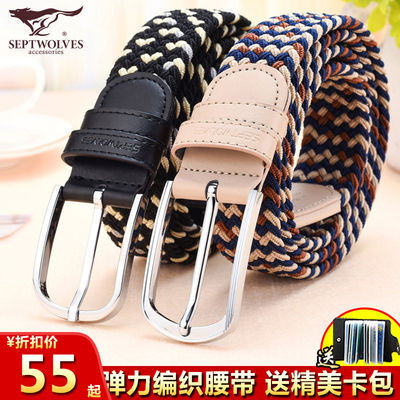 七匹狼男士帆布腰带松紧编织腰带女士简约百搭休闲青年扣潮人腰带(七匹狼官方正品男女通用不用打孔松紧)