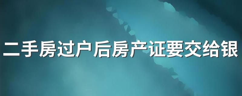 二手房过户后房产证是不需要交给银行的,完成过户后房产证会下来,但是这个时候一般房产证会在中介手上,等银行批贷下来,尾款结清给卖家才会进行交房,并把房产证给你。