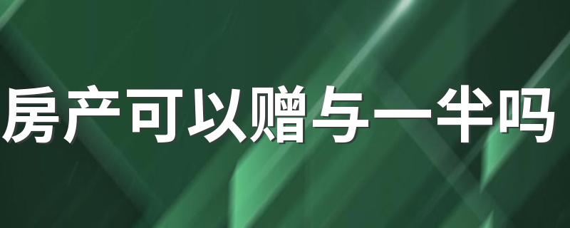 房产可以赠与一半。房屋一般来说是能赠与部分产权的,但应当按照法律规定办理登记手续。赠与并且过户后,这一半产权就是属于他人的,他人也可以再赠与或者卖给别人,但需要共同产权人的同意。