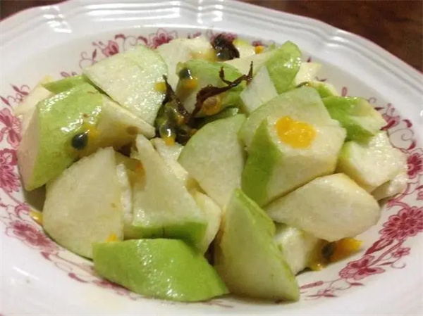 3、芭乐还可以用来做沙拉,将芭乐切成小块和其他一些水果搅拌均匀,再加入一些沙拉酱就可以食用了。