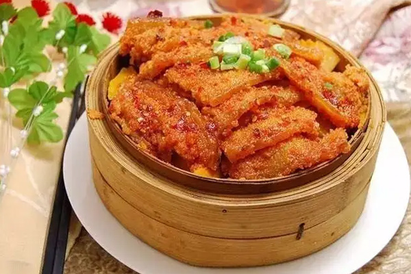 粉蒸肉一般采用猪肉制作,在腌渍猪肉时必须先沥干肉面水分,可以加盐或其它调料进行腌渍,使味渗透肉内。另外需要用到的米粉磨成粟米粒状即可,否则会影响口感。最后粉蒸肉要蒸到熟烂吐油,才能制作出嫩而不糜、米粉油润、香味浓郁的粉蒸肉。下面小编为大家具体介绍粉蒸肉怎么做才能好吃。