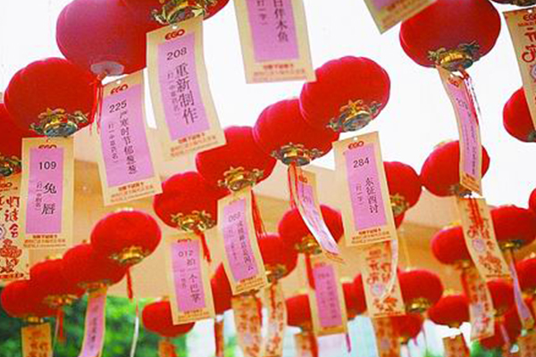 2、猜灯谜是从古代就开始流传的元宵节特色活动,人们会把谜条贴在灯笼上,供人猜。