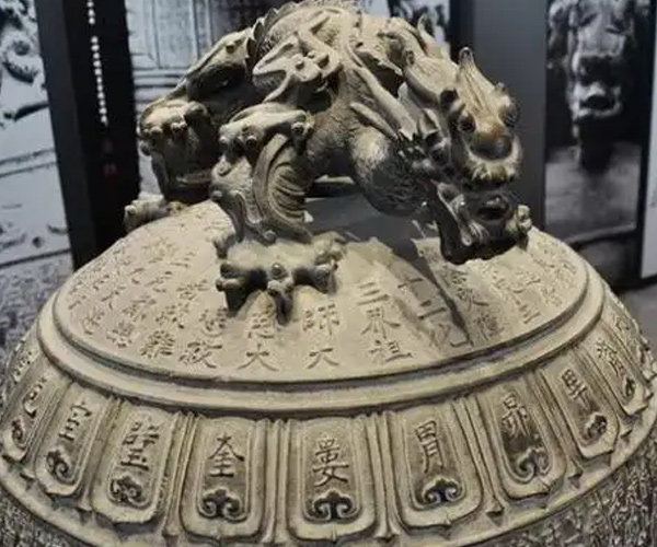 3、蒲牢:形似龙而小,排行第四,性好吼,其形象为洪钟上的龙形兽。蒲牢虽为龙子,但却害怕鲸鱼,若鲸鱼发起攻击,它就吓得大声吼叫。因此人们把蒲牢铸为钟纽,把敲钟的木杵作成鲸鱼形状。