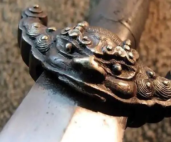 7、睚眦:豺身龙首,是老二,性好杀,其形象多刻镂于刀环、刀柄、龙吞口。这些武器刻上睚眦后,增添了慑人的力量。另外睚眦不仅装饰在兵器上,更大量应用在仪仗和宫殿守卫的武器上,显得更加威严庄重。
