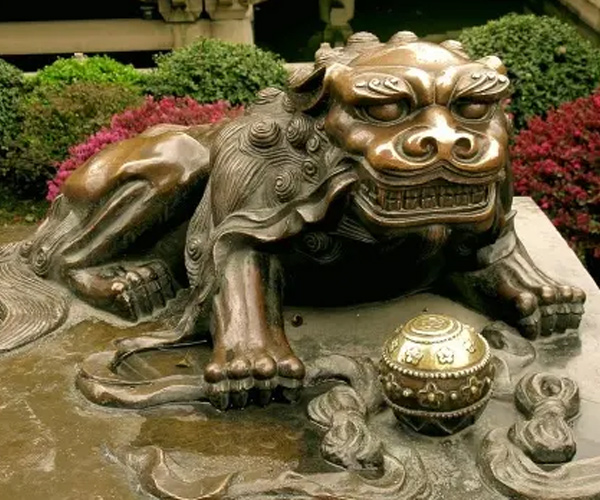 8、狻猊:形似狮,是老五,平生喜静不喜动,好坐并喜烟火性,其形象多用来装饰佛座和香炉的脚部。相传佛座上装饰的狻猊是在汉代时跟随佛教传入中国的。明清之际的石狮或铜狮颈下项圈中间的龙形装饰物,也是狻猊的形象。