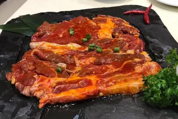 3、煎牛上脑肉的做法:将牛上脑肉按1厘米左右的大小切片,有条件的可用肉拍子将肉片拍松成大薄片牛肉扒,zai添加适量盐和胡椒粉腌制30分钟。锅里添加适量生菜油,烧至六七成热再下入牛肉扒。