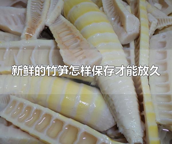 将新鲜的竹笋放入冰箱冷藏区保存,可保存一星期左右。竹笋的口感鲜嫩,是人们爱吃的食物之一,但竹笋的保存时间较短,因此新鲜的竹笋怎样保存才能放久,是人们比较好奇的问题之一,以下是竹笋保存方法的介绍,感兴趣的读者可继续往下阅读。