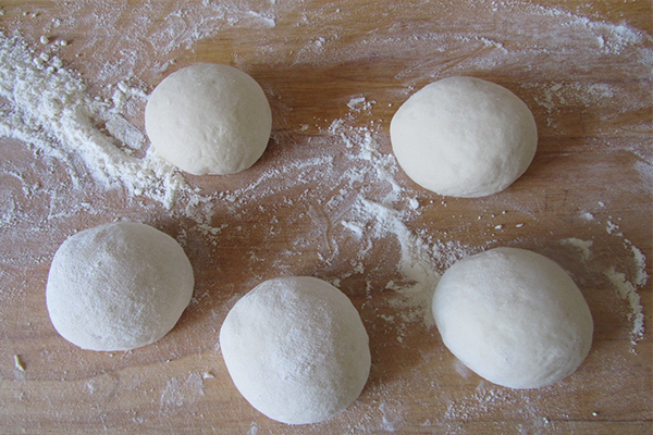 3、醒发好的面团揉至成长条状,并切成几个差不多大的面团,揉搓成圆形后即可进行蒸制。