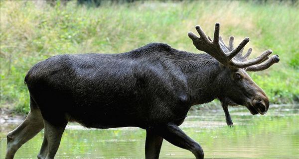 3、驼鹿主要栖息于原始针叶林和针阔混交林中,一般不会远离森林,活动区域随着季节变化而有所差异,春季一般在树林、河岸柳丛茂密的地区活动,夏季在山涧溪流、多汁植物茂盛的低洼地或沼泽地一带活动。