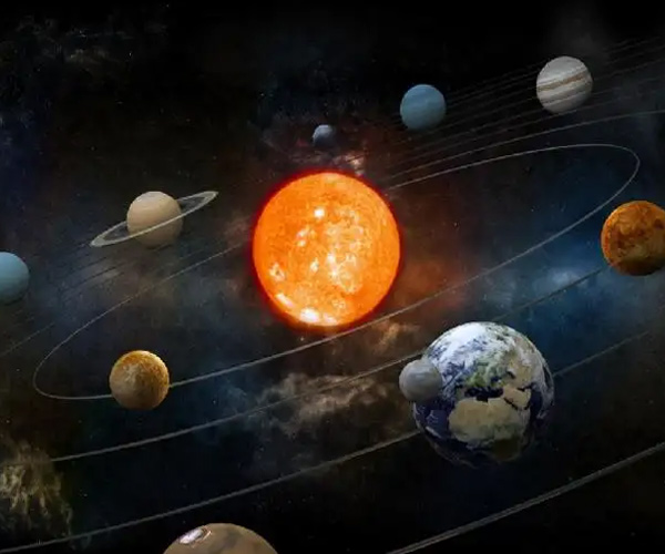 4、太阳系中的八大行星,以及小行星、流星、彗星、外海王星天体、星际尘埃等,均围绕着太阳公转,太阳则围绕银河系的中心公转。地球围绕太阳公转的轨道与太阳的平均距离大约是1.5亿千米,地球公转的平均速度大约是29.8 km/s,7分钟内行进的距离等同于地球的直径的距离。