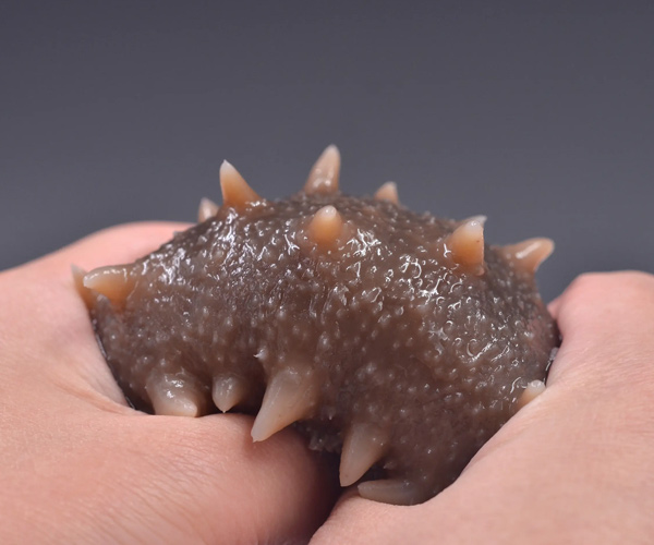 4、看加温后的变化。将手搓热,把海参放在手里捂一会儿,捂热抓住海参的两头,让海参弯曲。如果海参变弯、变软,且温度越高,这种变化越明显,则说明海参被掺了糖。此外,优质的干海参被敲击时会发出清脆的声音,劣质海参敲击之后发音沉闷。
