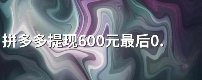 以上就是关于拼多多提现600元最后0.01钻石需要多少人玩法介绍,大家可以了解下,更多的有关拼多多活动玩法关注本站分享。