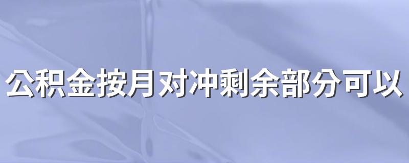 公积金按月对冲剩余部分可以提取。用户办理了公积金按月对冲业务,并不会影响用户提取公积金。只要满足公积金的提取条件,那么用户就可以提取公积金账户内的余额。只不过余额提取完以后,用户需要自己将钱存入房贷银行卡中进行还款。